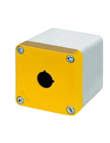 040C0808-8EGP1 Botonera de aluminio de tapa amarilla, 1 taladros de Ø22mm, con entrada de cable. Dimensiones 85x85x85mm