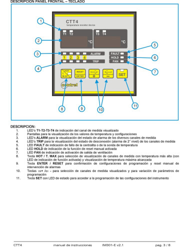 La centralita de control de temperatura CTT4 está pensada para aplicaciones en el control de máquinas eléctricas, transformadores motores etc., en los que se puede controlar los niveles de temperatura, señalando la condición de temperatura crítica o para poder desactivar la máquina bajo control.