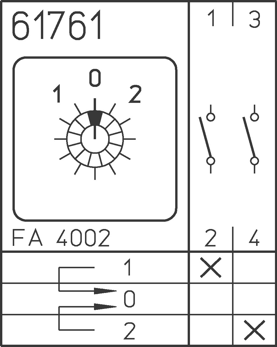 Conmutador de Levas 1-0-2 con retorno a "0", 1polo, hasta 20A (AC21a), montaje 003M1 empotrado sobre 4 taladros 36x36mm, placa gris 48x48mm