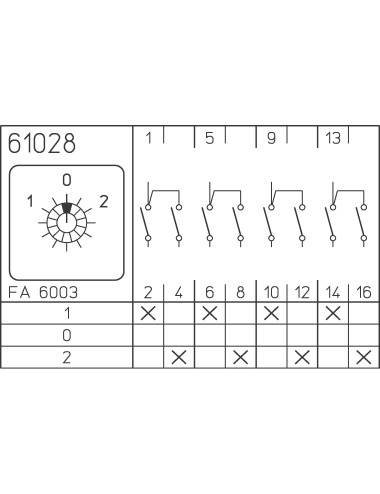 Conmutador 1-0-2 4polos 63A con montaje en puerta en 4 taladros 48x48mm