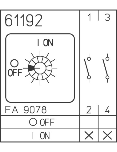 Interruptor Principal, 2polos, hasta 20A (AC21a), montaje 205M4 empotrado sobre 1 taladro Ø22,5mm, mando negro 67x67mm, bloqueable por hasta 3 candados en posición Off