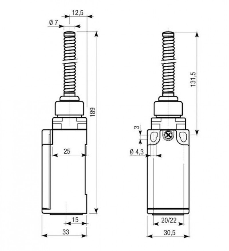 Final de Carrera de varilla flexible en cuerpo de metálico con 1 entrada de cable y contactos 1NA+1NC de apertura rápida