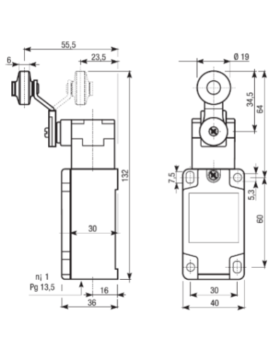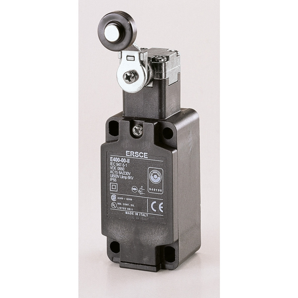 Final de Carrera de Palanca+Roldana con cabeza y cuerpo metálico con 1 entrada de cable y contactos 1NA+1NC de apertura rápida