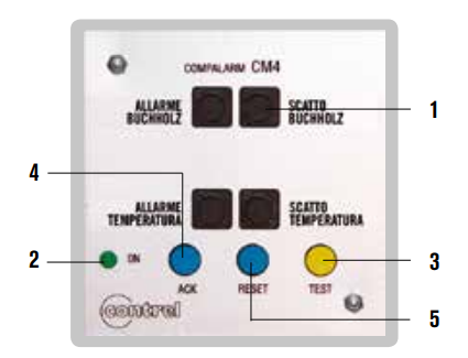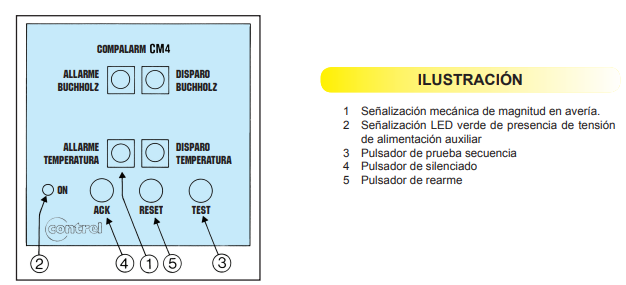 - Incorpora botones de ACK (Silenciado), RESET (Rearme) y TEST (Prueba)