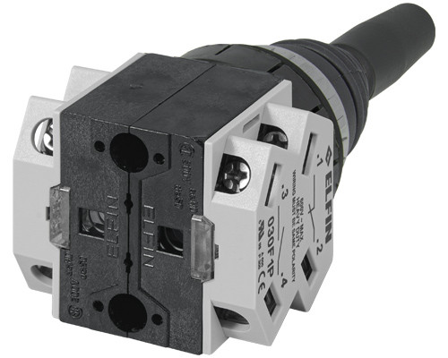 030MTTTTN Joystick montaje en Ø30 con 4posiciones Temporales. Incluye 2NA+2NC y entra un contacto en cada posición, excepto en 0.
