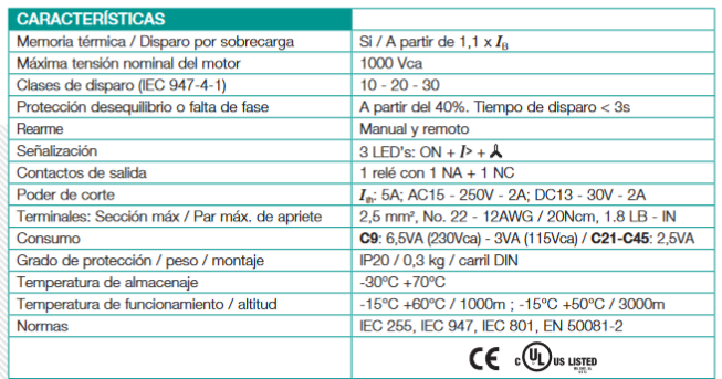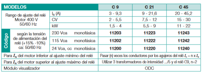 El C9-230VAC es un relé que protege motores trifásicos de 1,5 a 4KW contra sobrecarga, desequilibrio y fallo de fase.