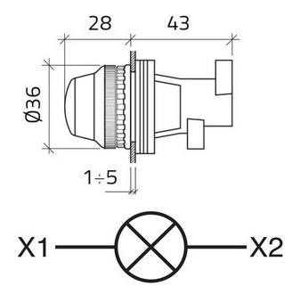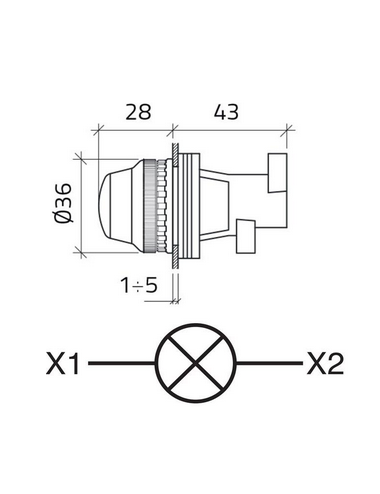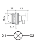 Piloto Verde Ø30 para alimentación directa, con montaje en Ø30mm. Lámpara E14 (7W) no incluida.
