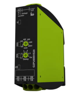 Relé de Control de mínima tensión trifásica 208 - 690VAC. Formato Industrial de 25mm de ancho. Autoalimentado.