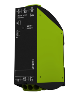 Relé de Control de Temperatura del arrollamiento de un motor mediante sondas PTC . Formato Industrial de 22,5mm de ancho. Alimentación multitensión 24-240VACDC, y salida 2NAC.